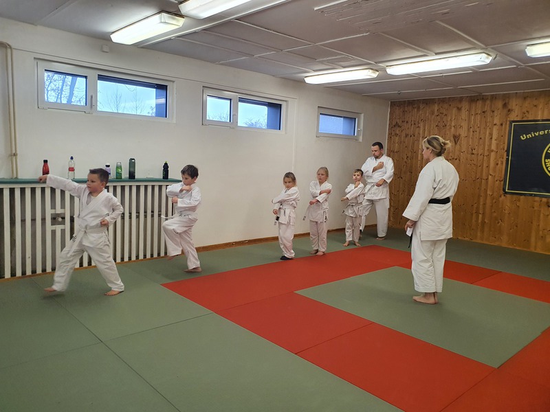 In der Anfängergruppe wurde in den ersten 1,5 Stunden verschiedene Formen der Grundschule gelehrt. Diese wurden benötigt, um dann in den späteren 1,5 Stunden eine Kata zu lernen.