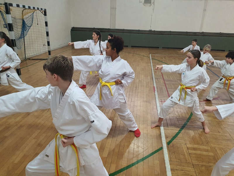 Zunächst trainierten die Karateka in verschiedenen Gürtelstufen in insgesamt 2 Trainingseinheiten á 1 Stunde.