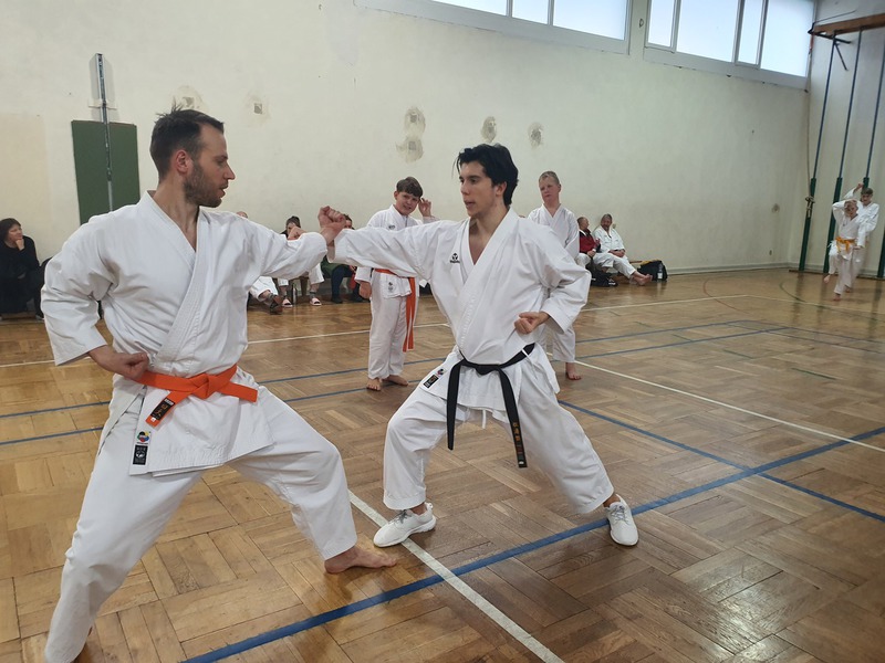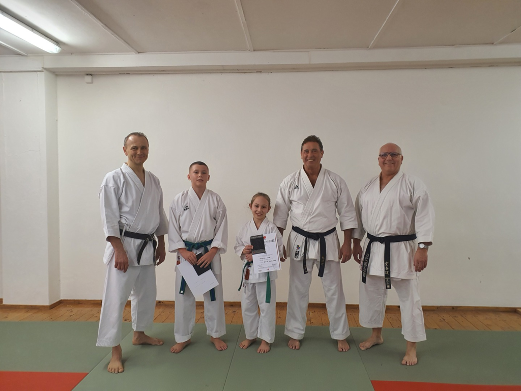 Die Grundschule, die Katas und die Kata Bunkai wurden von beiden fehlerlos vorgetragen. Besonders aber begeisterten Sie die Prüfer mit ihrem Kumite und erhielten ein großes Lob für Zielsichere, schnelle Angriffe und sehr gute Block-/Kontertechniken.