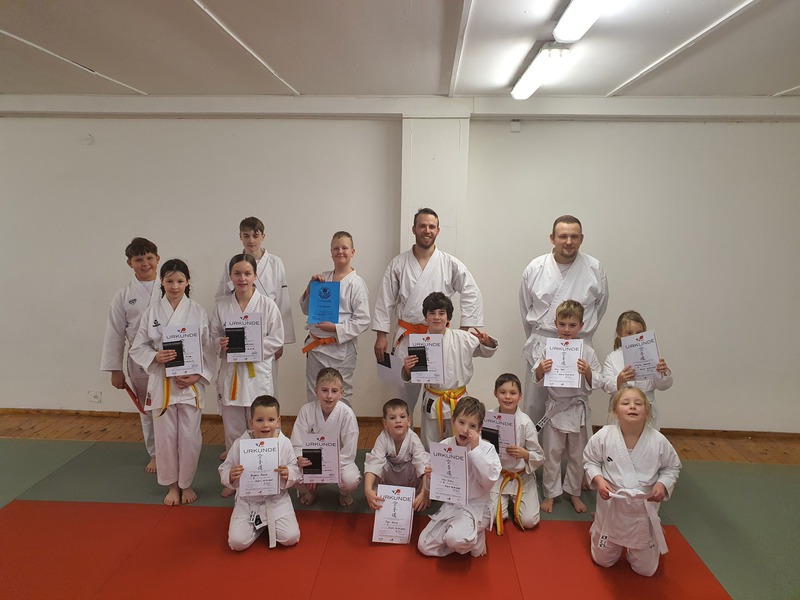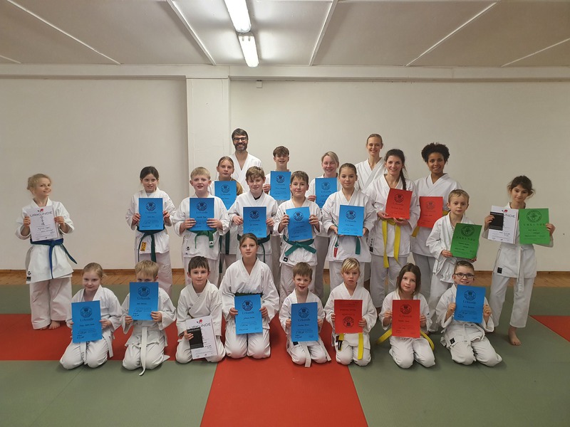 Alle Prüflinge zeigten eine saubere Grundschule, eine fehlerfreie Kata und die korrekten Anwendungen am Partner und dürfen nun mit Stolz ihre nächsten Gürtel tragen.