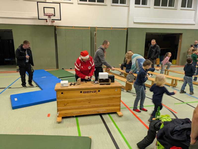 Darum trafen sich bereits am Freitagabend mehrere Mitglieder und Eltern, um die Halle einzurichten.